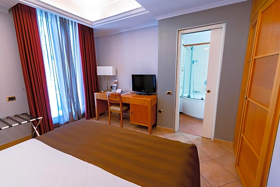 This room offers a satellite TV, mini-bar, and a private bathroom with a bathtub and shower. Some rooms have views of the garden, some of the internal courtyard, and some on the main road.